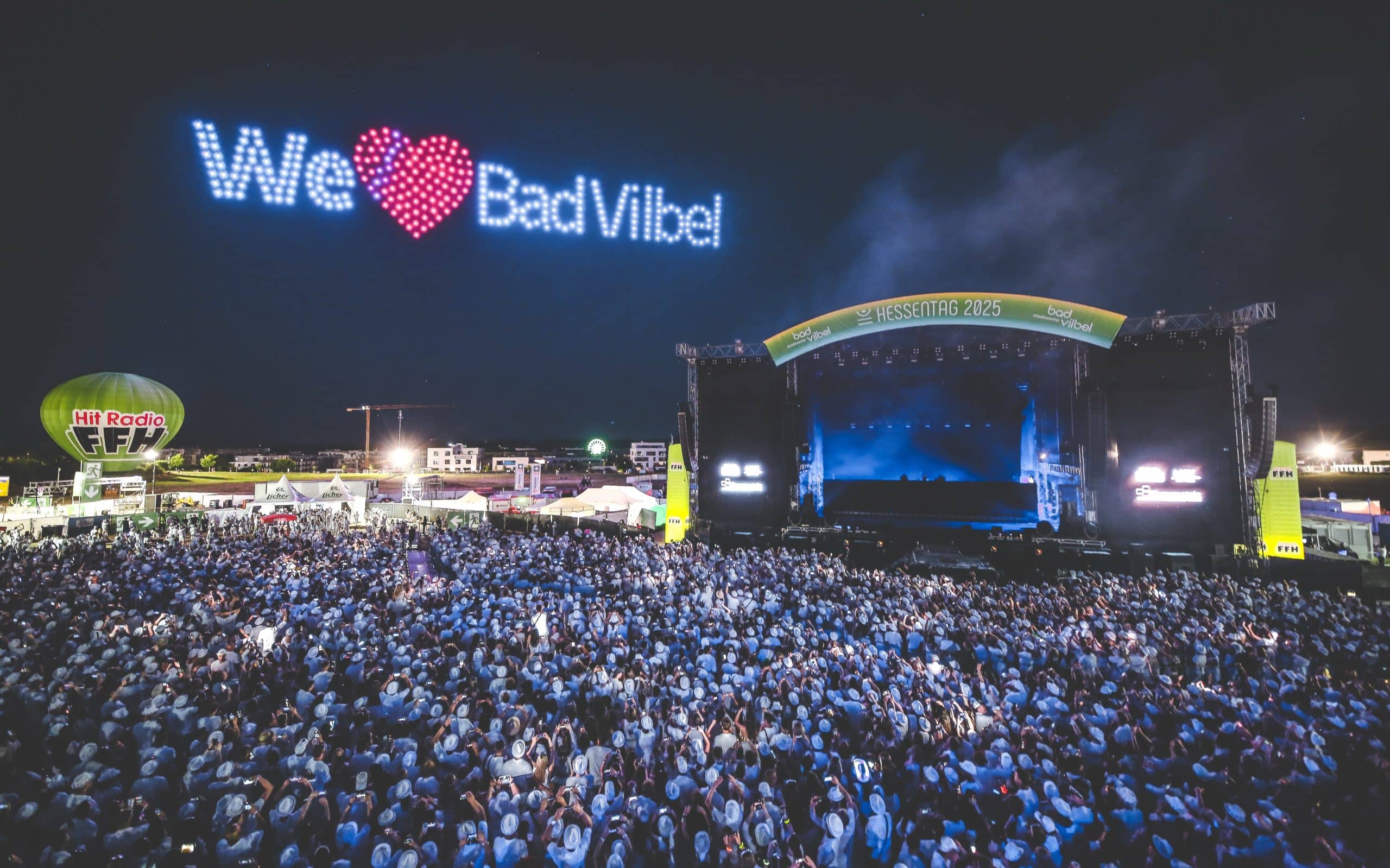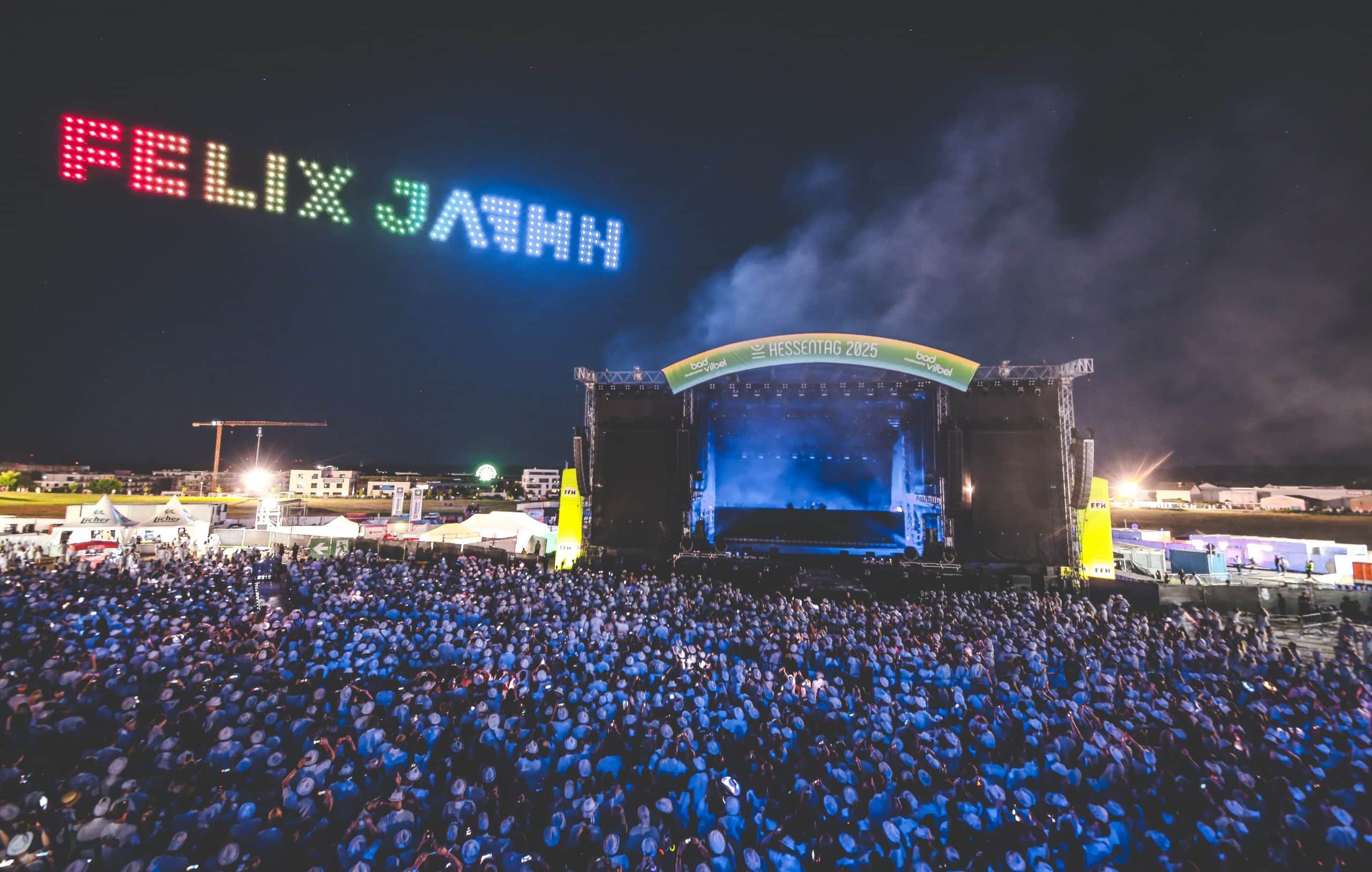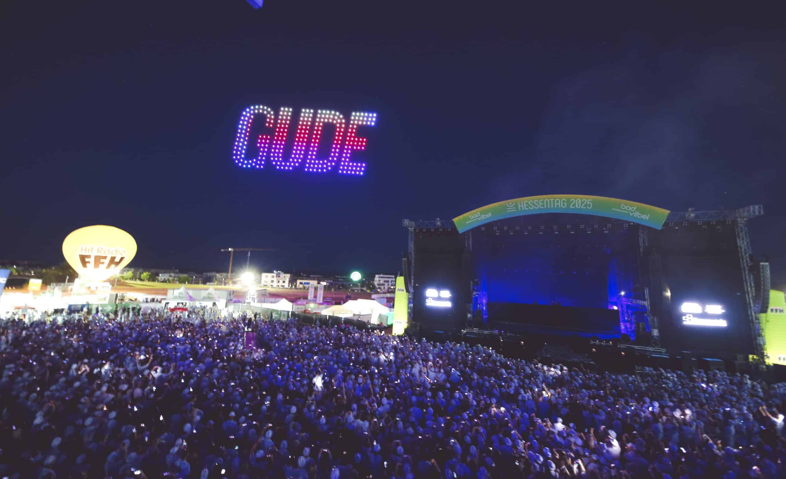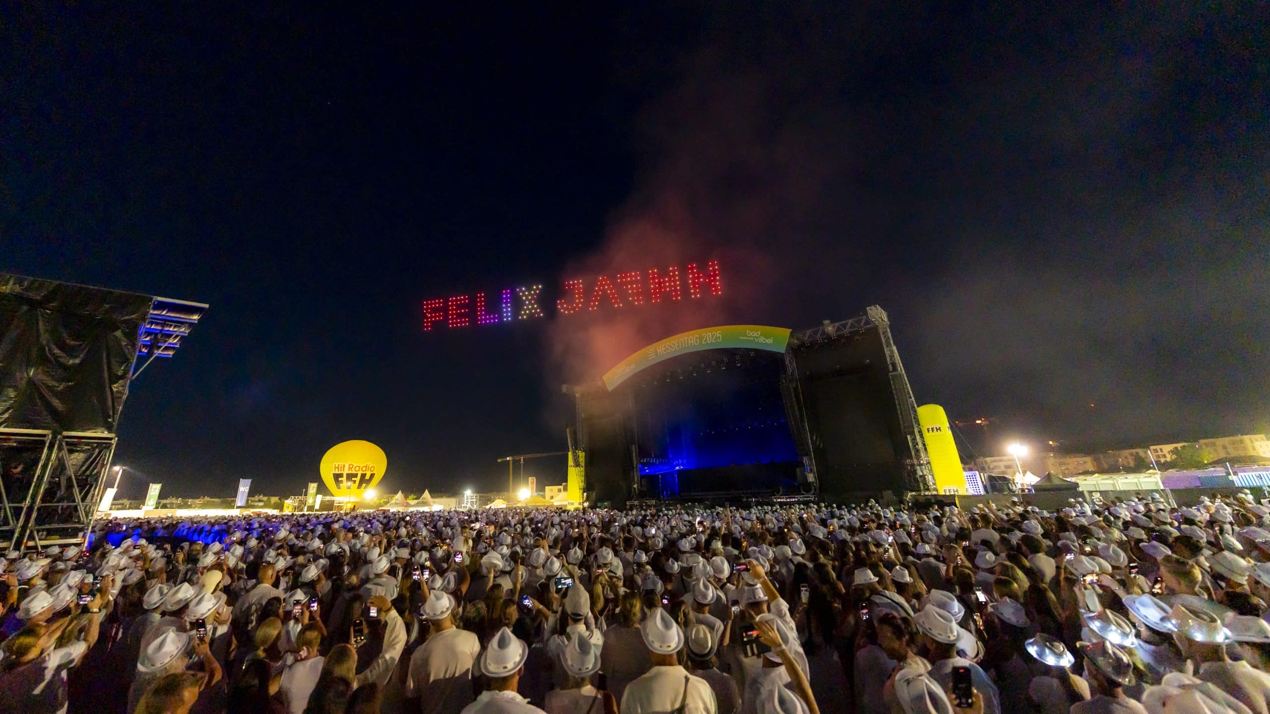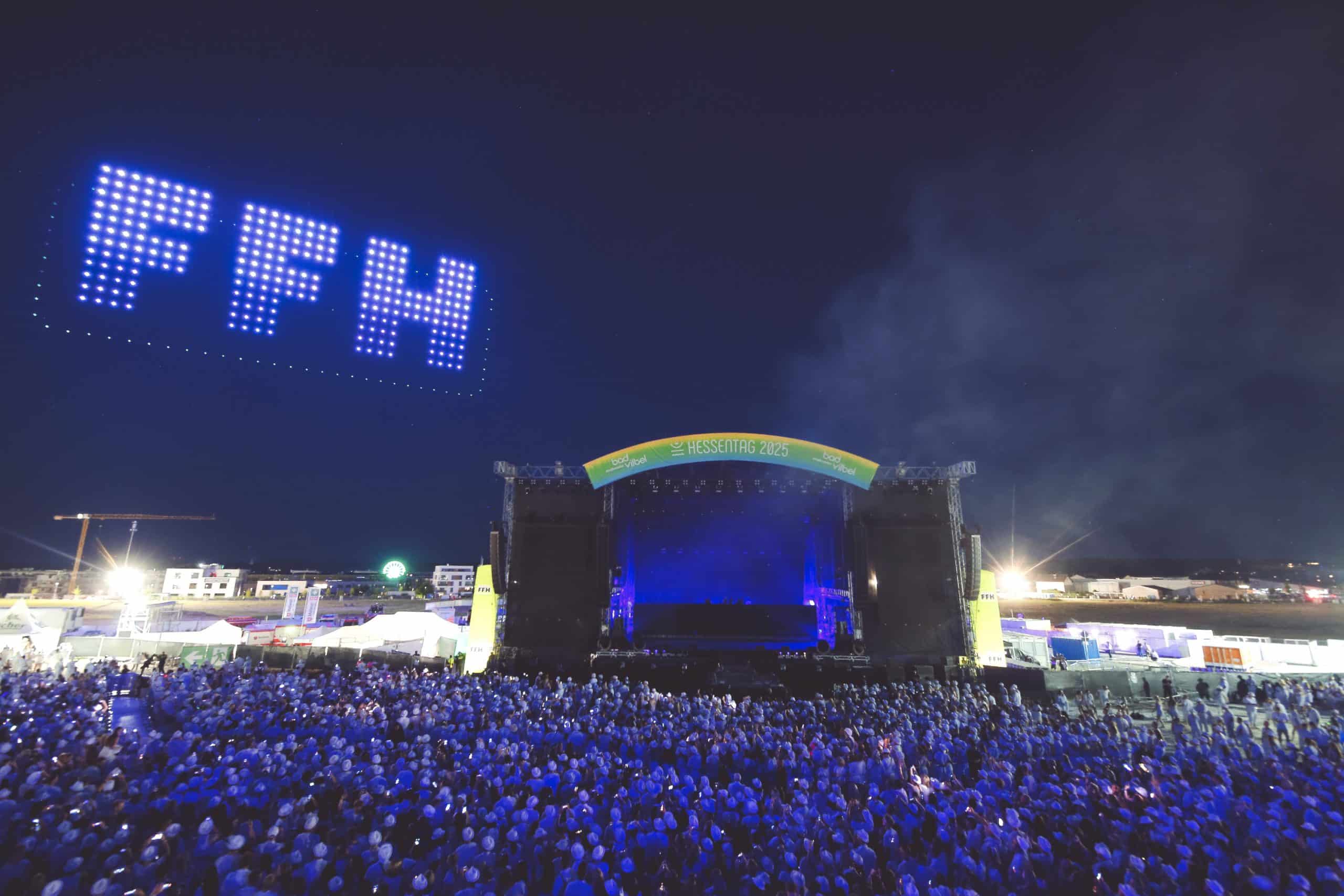 Wenn sich der Himmel über Bad Vilbel in ein leuchtendes Kunstwerk verwandelt, ist klar: Showmatrix ist am Werk. Als visuelles Highlight der FFH Just White Party auf dem Hessentag 2025 in Bad Vilbel begeisterte die Drohnenshow von Showmatrix tausende Besucherinnen und Besucher. In einer eigens entwickelten Inszenierung verwandelten hunderte leuchtende Drohnen den Nachthimmel in eine atemberaubende Bühne aus Licht, Bewegung und Musik.